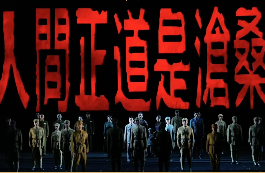 话剧《人间正道是沧桑》以上世纪20年代至新中国成立这一段风云变幻的历史时期为背景,通过描写杨、瞿两个家庭的浮沉、兴衰和变异,形象地说明了中国人民革命胜利的必然和中国共产党执政的历史大势所趋。舞台上,王劲松扮演的“瞿恩”正是为了理想而付出生命的共产党员。