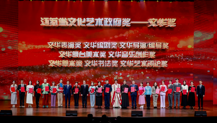 11月27日晚,2025年江苏省文化艺术政府奖颁奖仪式暨优秀作品惠民展演在江苏大剧院举行。省委常委、省委宣传部部长徐缨,省政府副省长陈忠伟,省政府副秘书长刘建,省委宣传部副部长徐宁,省文化和旅游厅党组书记、厅长杨志纯,省人力资源和社会保障厅党组书记、厅长朱从明,省委办公厅、省人大、省政协相关委员会负责同志,省文旅厅、省文联、省委《群众》杂志社、省演艺集团、省文投集团等单位负责同志,以及各设区市文旅行政部门相关负责同志,省文华奖、五星工程奖获奖单位和个人代表,与千余名观众共同见证江苏文化艺术累累硕果,颁奖仪式由南京市话剧团团长常小川、副团长杨彦主持。