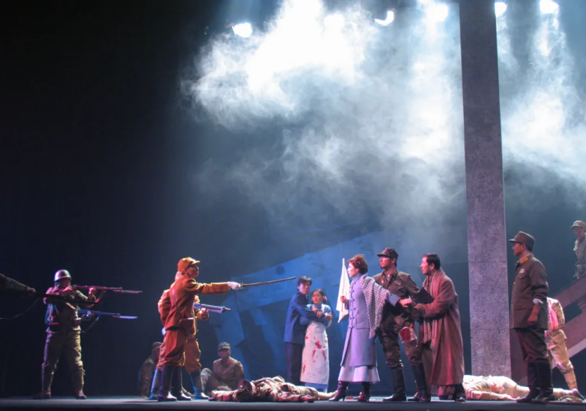 舞台上的每一幕都刺透人心:红十字袖章挡不住侵略者的屠刀,母亲为护女儿,甘愿承受最残忍的暴行……88 年前的那场浩劫,被浓缩进舞台光影,直抵人心!